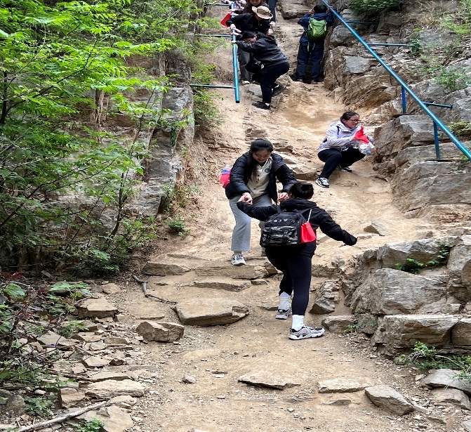 藏龍澗,或懸崖峭壁或羊腸道,或視野開(kāi)闊或一線(xiàn)天,很多景點(diǎn)需要大家協(xié)作才能順利通過(guò)。青年志愿者互幫互助,團結協(xié)作,相互了解、彼此融入。